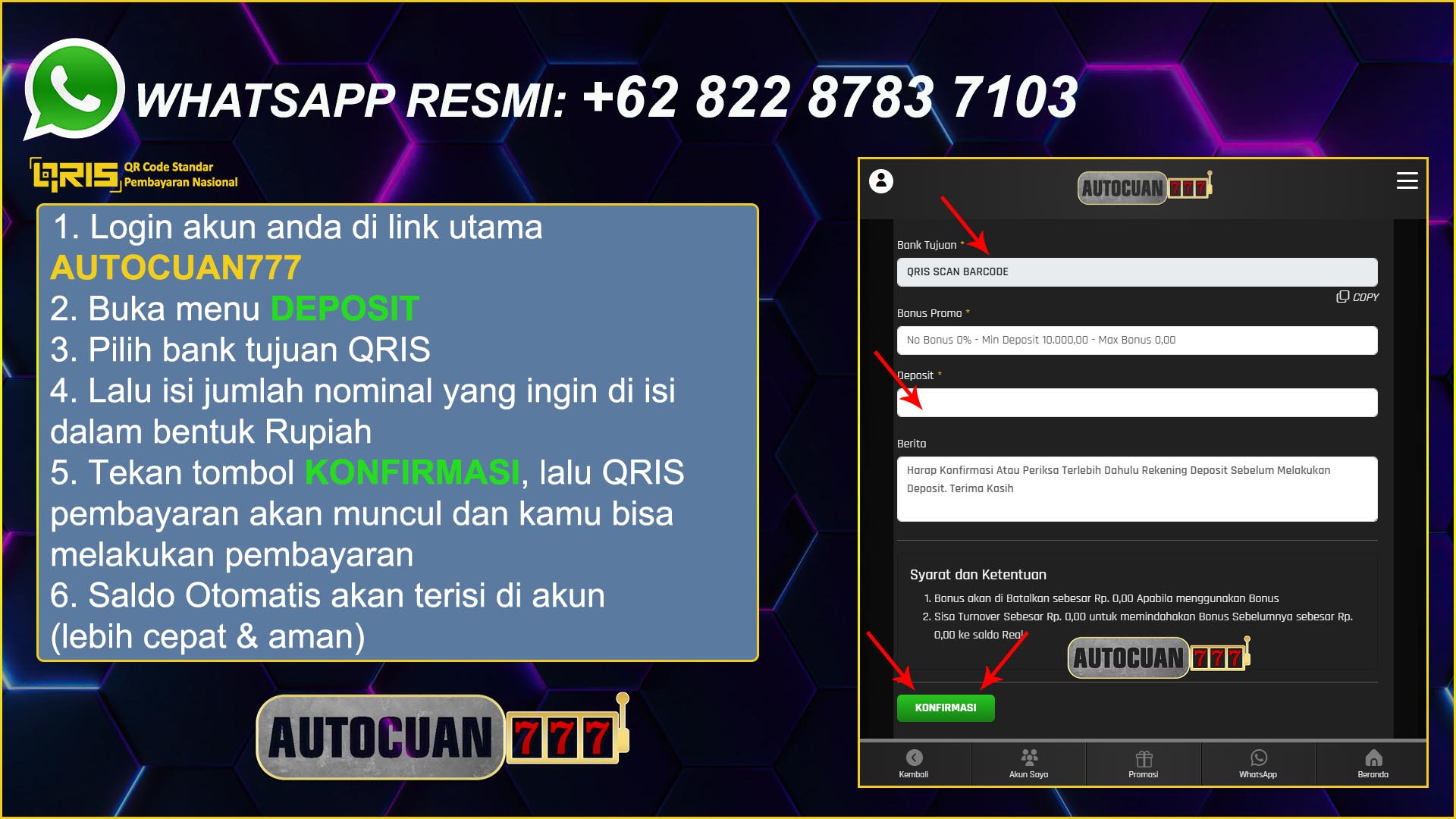 Proses Deposit dan Withdraw di AUTOCUAN777 dilakukan dengan otomatis jadi Cepat & Aman. Berikut dukungan metode :
